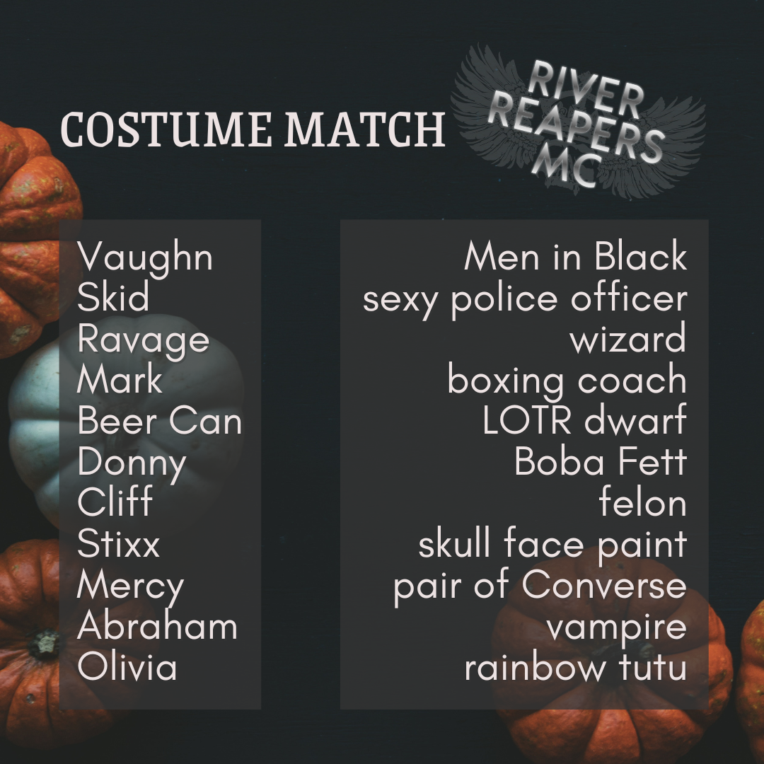 Bruce shook his head. She switched it on. A Buddy Holly song filled the Studebaker, temporarily breaking the Halloween music marathon. Bruce loosened his grip on the steering wheel and actually looked at Margaret. She wore her blonde hair in short, loose curls and Victory rolls. Red lipstick painted her luscious, plump lips. She had drawn a fake mole on her cheek.